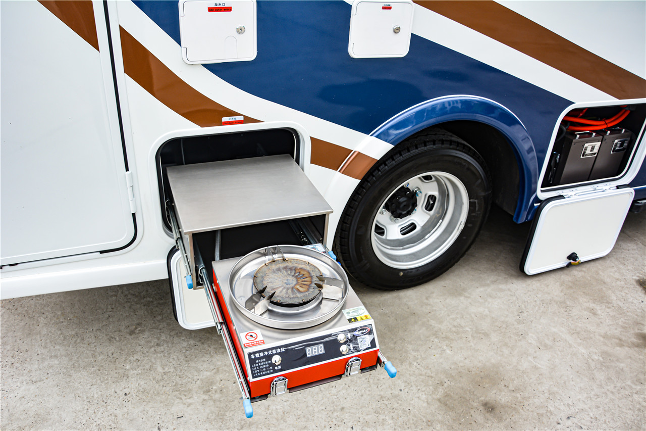 | 戶外清水注水/出水口 | 市電接口+新能源充電接口 | 戶外柴油灶 | ||||||